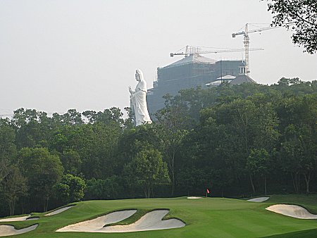 17番とクラブハウスの間に観音様が立っている。 |