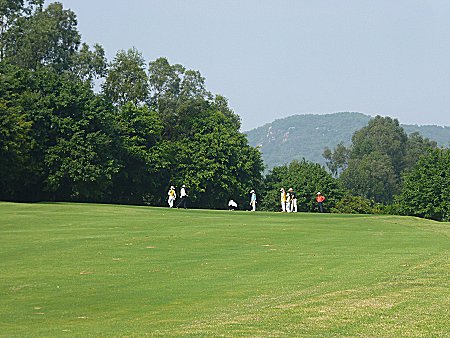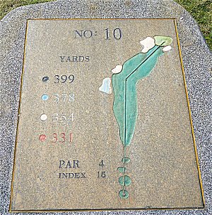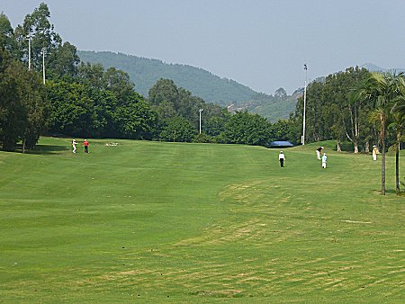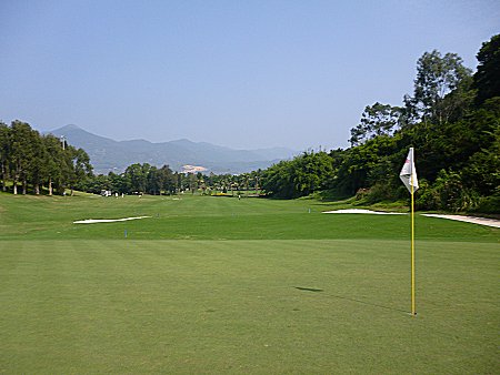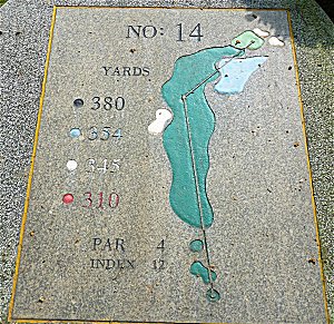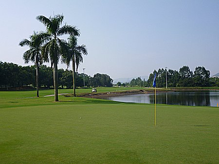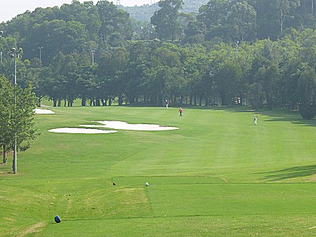 比較的短いミドルホールであるが、右に池があるので注意。ロングアイアンかウッドでフェアウエーをキープし、ショートアイアンでグリーンも狙える。