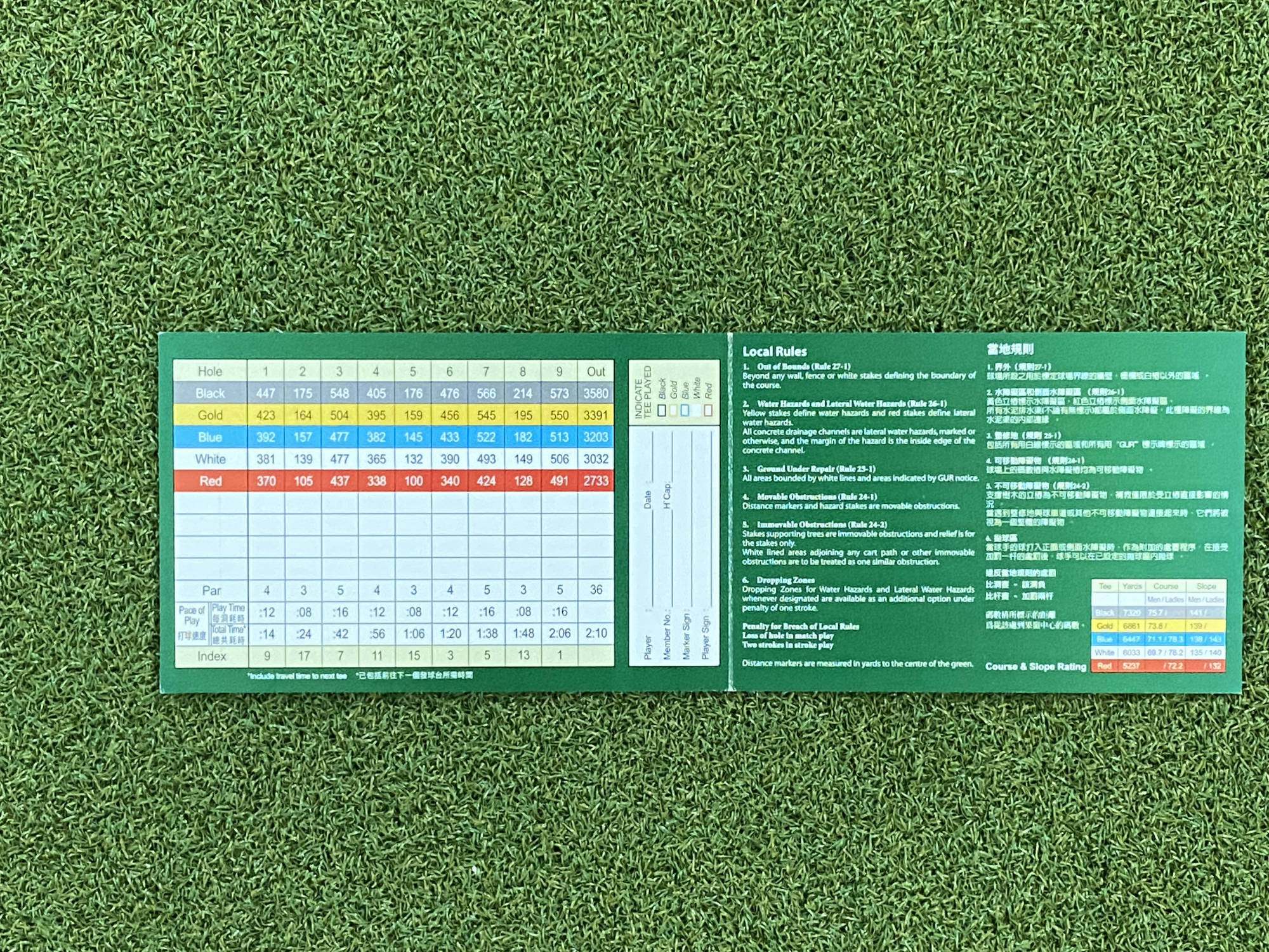 久しぶりに難しいコースをプレーしたとの印象。狭く圧迫感をはじめ、亀の甲羅なようなグリーンであり、しっかりとグリーンの真ん中に落とさないと、こぼれる。また、グリーン周りのよせも非常に難しい。ちょっとでもショートしたら、傾斜により足元までボールが戻ってくる。なにかバカにされた気分。バンカーも深く、甲羅グリーンにあわせると、大たたきに間違いない。