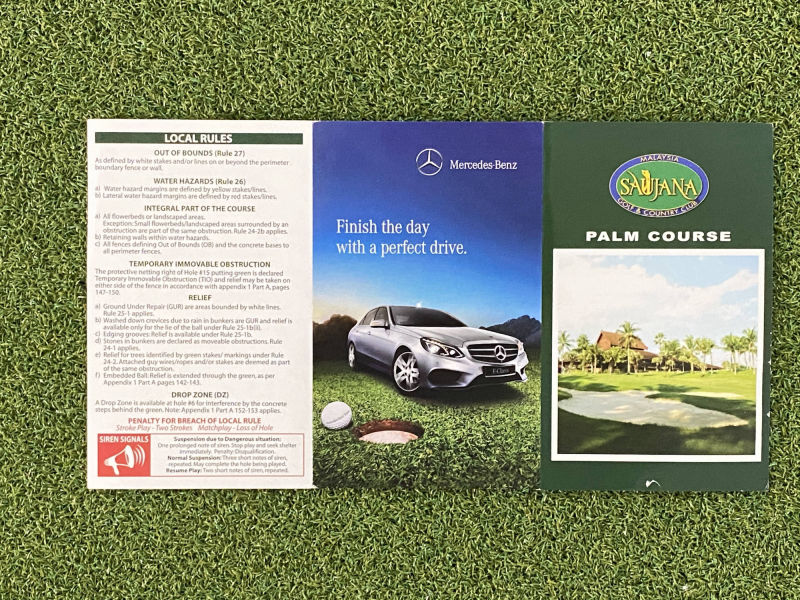 パームの方が有名だが、バカには出来ない。アップダウンも意外とあり、なんホールか池越えもある。もちろんマレーシアならではのパーム油ヤシの木がいっぱいでラフに入れるとなかなかグリーンを狙うことはできない。ティーボックスからフェアウエーの間には必ずボーボーなラフ、池、谷の印象があり、ティーショットは比較的調子が良くないとスコアメークはできない。