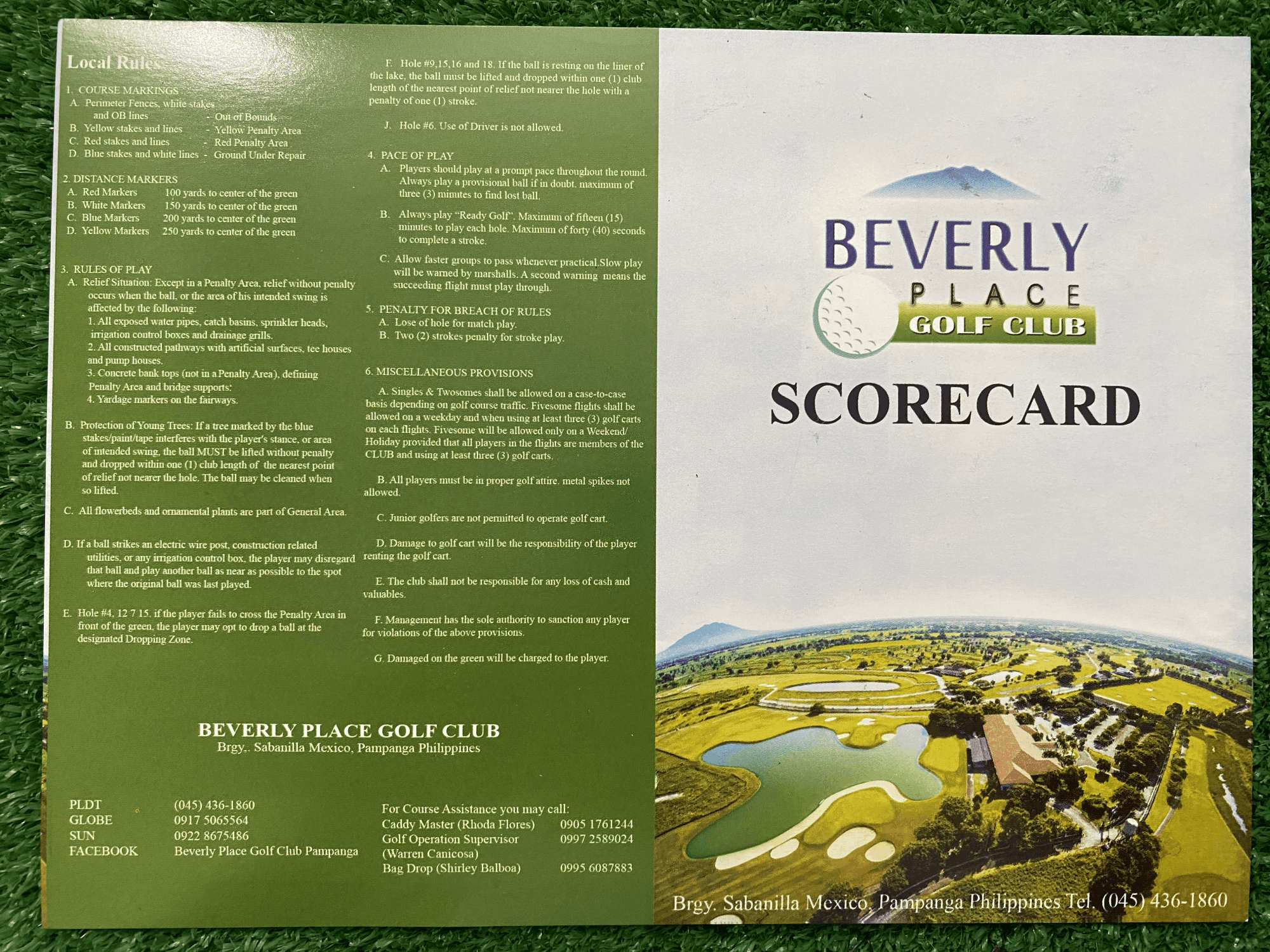 バックラウンド:晴れている日は遠くにArayat山がよく見える。当コースのロゴ。